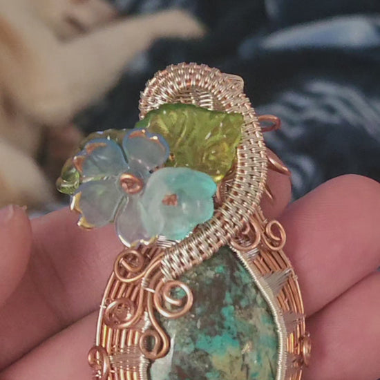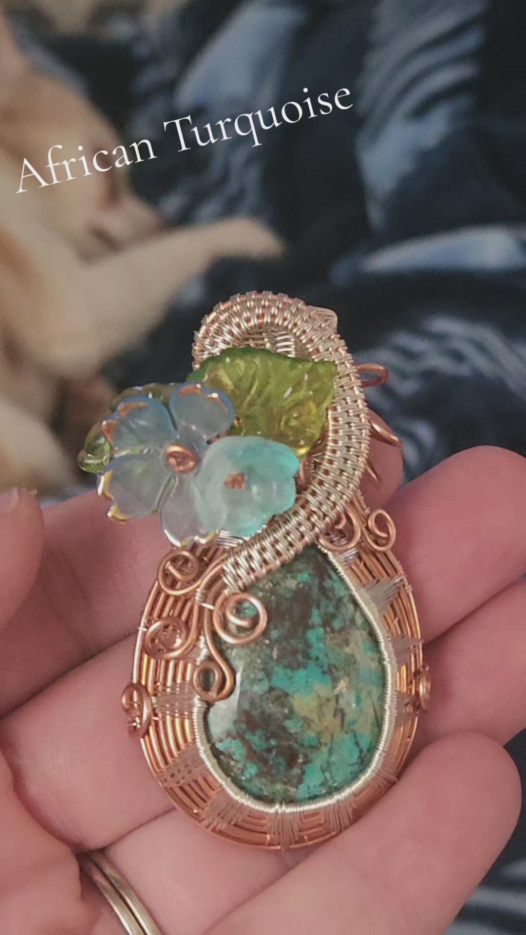 Elevate your style with our African Turquoise Copper & Silver Pendant! Crafted with stunning African turquoise, this pendant will add a unique touch to any outfit. The intricate copper and silver design is sure to catch the eye. Make a statement and inspire envy in all who see it!