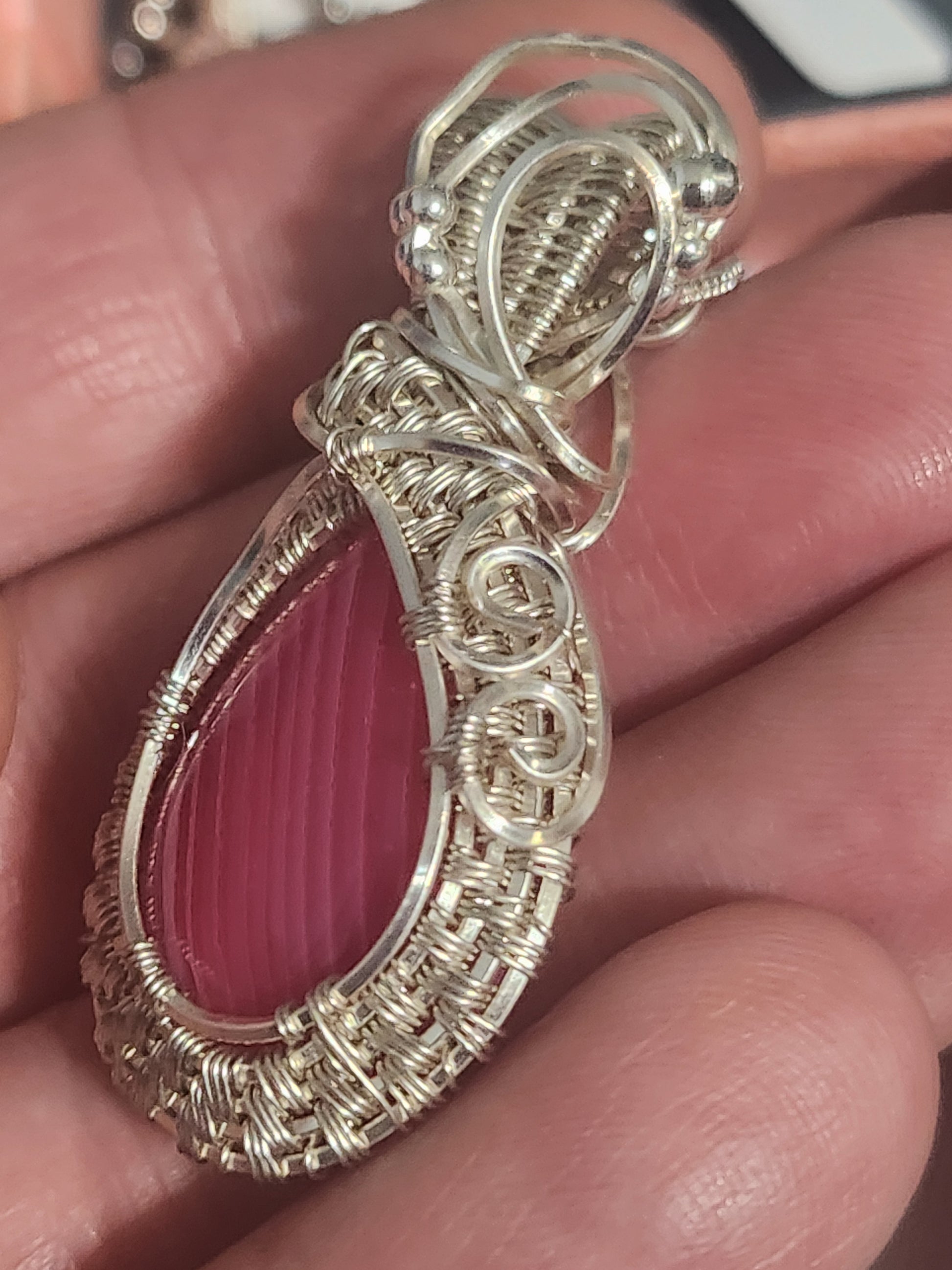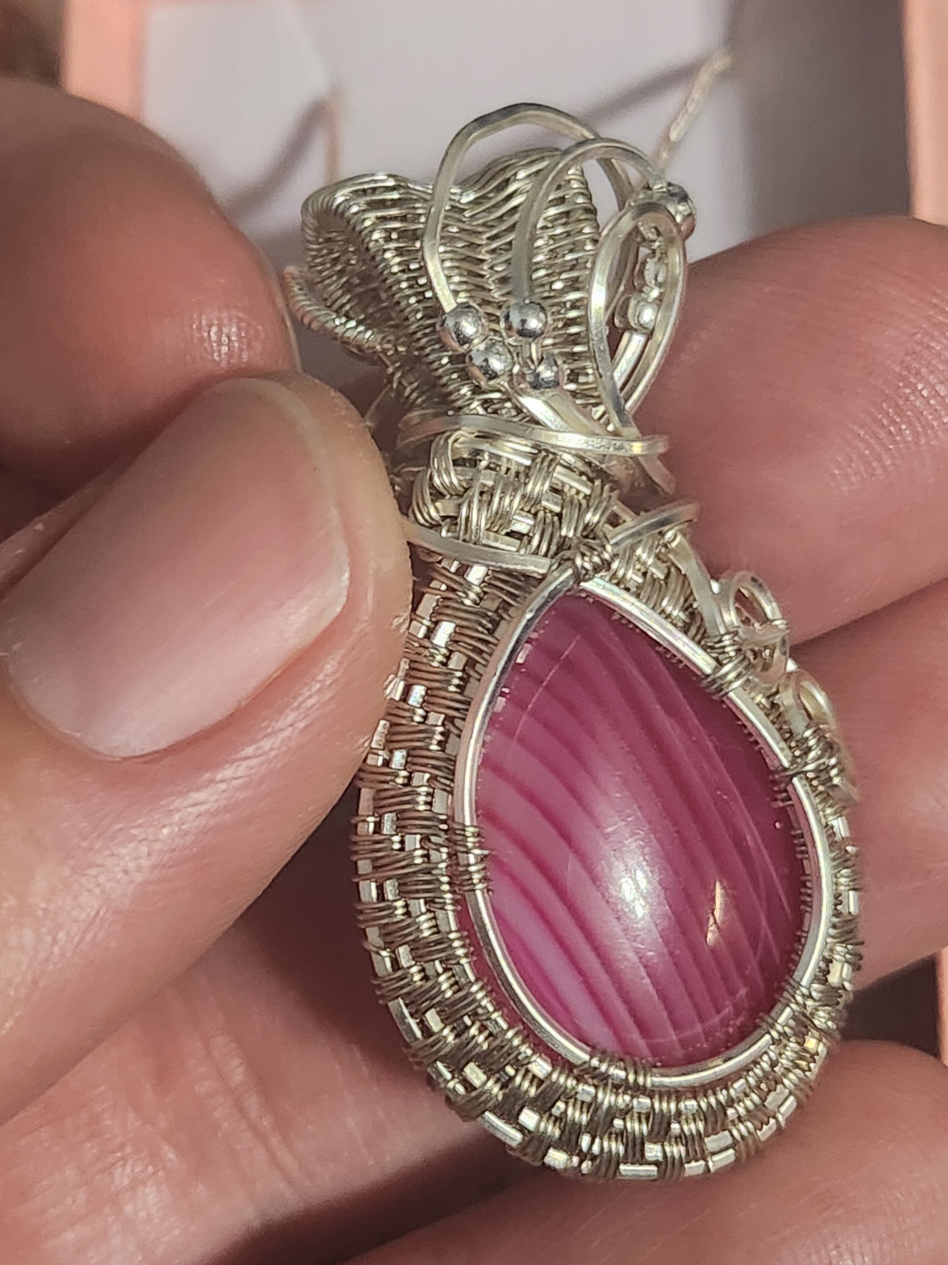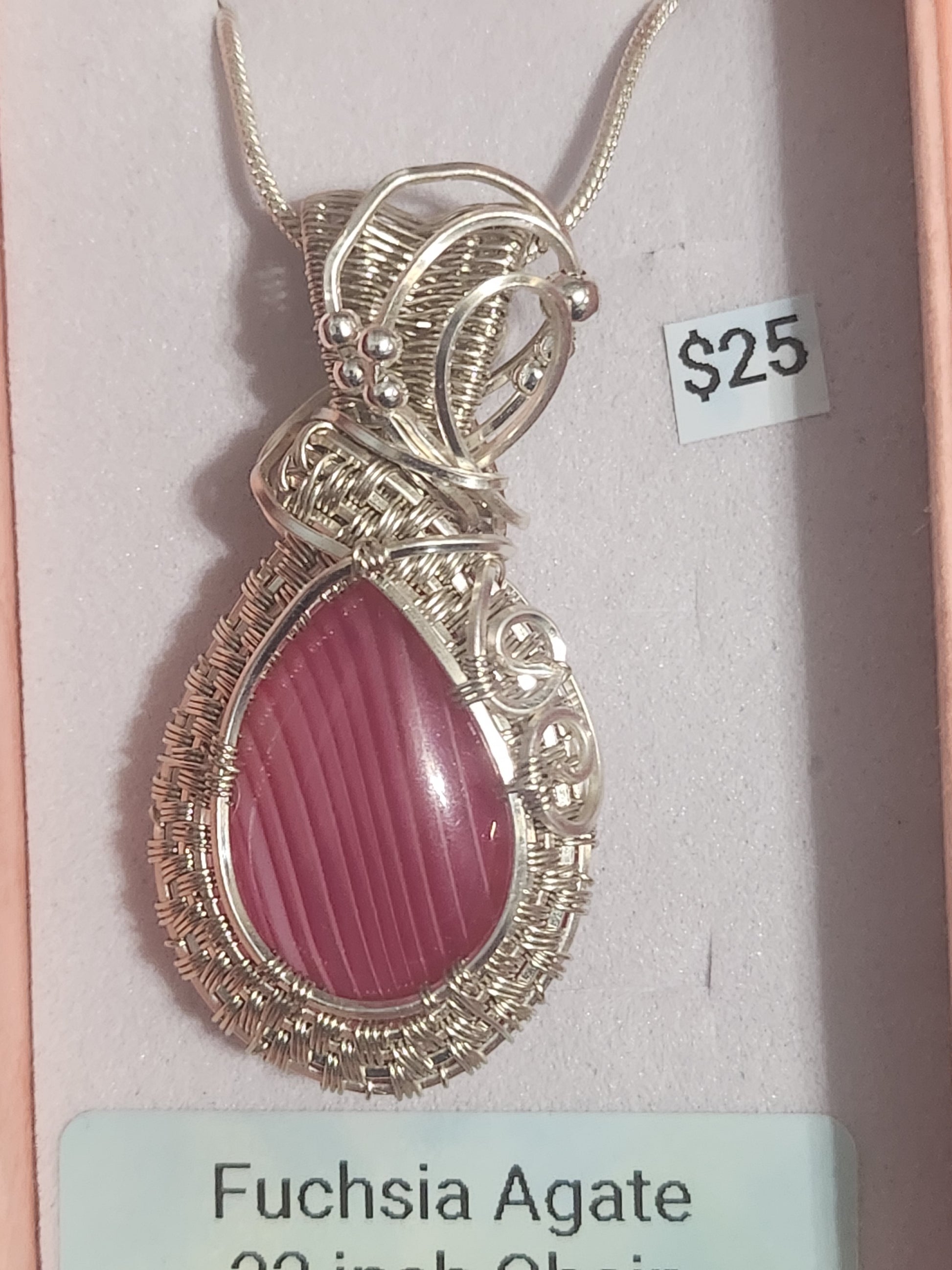 Find inner harmony and balance with our Fuchsia Agate silver plated Pendant. Handcrafted with love, this stunning pendant features a vibrant fuchsia agate stone wrapped in delicate silver wire. Experience the beauty of nature and connect with your true self.